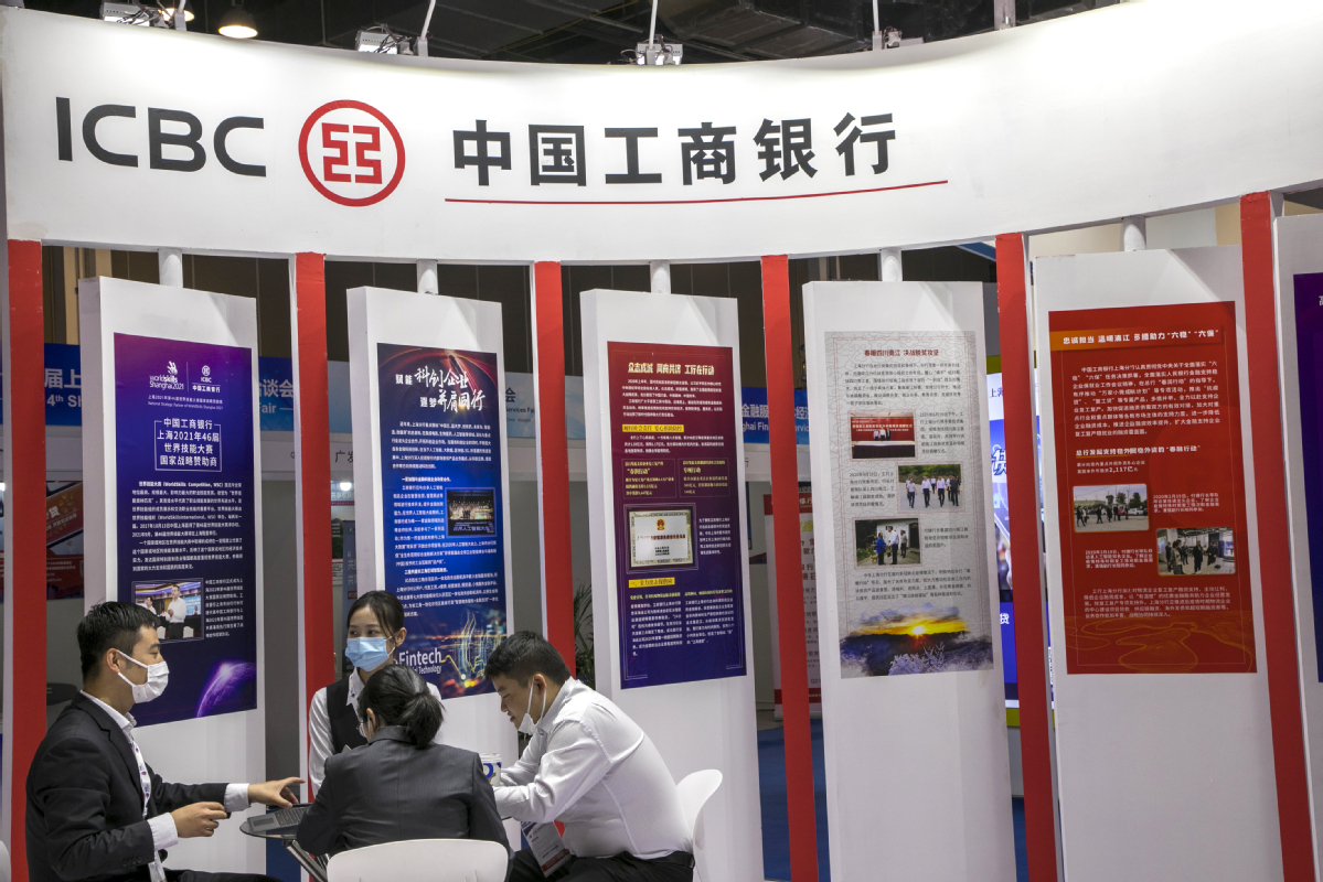 The booth of Industrial and Commercial Bank of China during an industry expo in Shanghai. [Photo/China Daily]