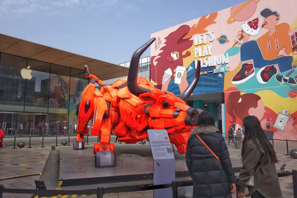Let’s say hello to this giant ox for good luck in this new zodiac year! Greeting friendly and curious visitors, a "mechanical ox" has just embarked on his journey to Beijing’s Sanlitun. We are all sure that he will enjoy his time on stage in this bustling area!