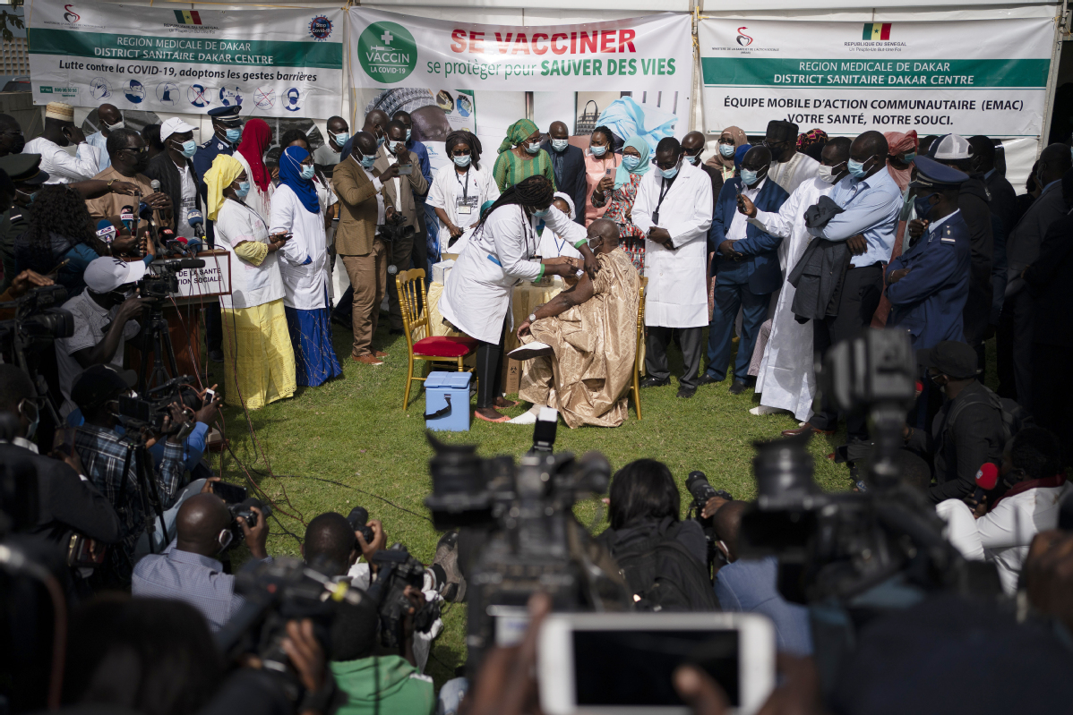 A dose of the Sinopharm vaccine is administered to a man at the health ministry in Dakar, Senegal, on Tuesday. LEO CORREA/ASSOCIATED PRESS