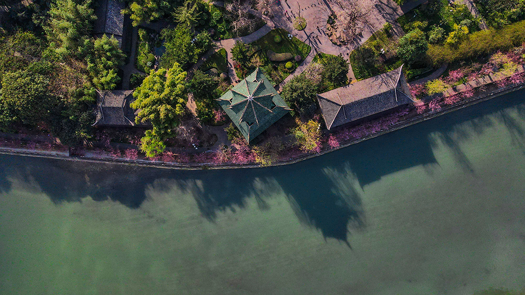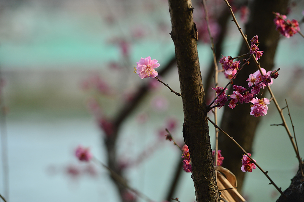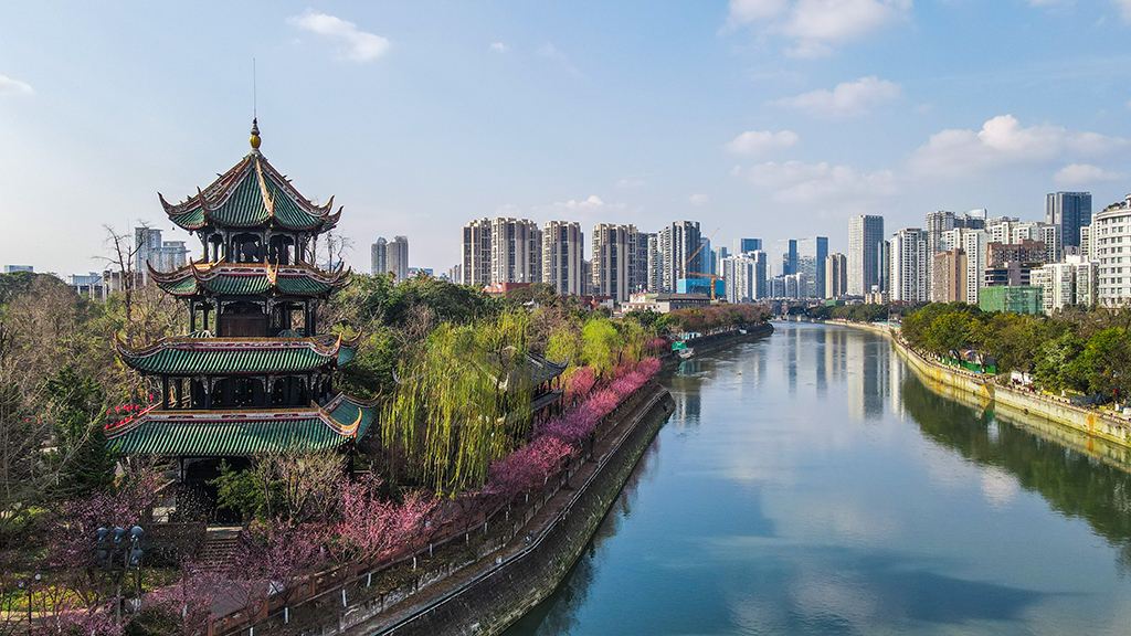 Wow! What picturesque views in Chengdu city, Southwest China’s Sichuan province! Red plums and corn poppies are already in full blossom in city parks and match very well with the river’s smooth water and weeping willows along its banks. No wonder it attracts so many photographers!