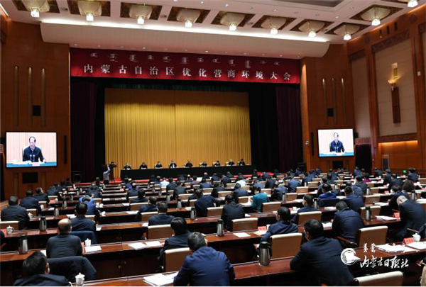 The 2021 Inner Mongolia Business Environment Conference is held by the Inner Mongolia government in its capital city Hohhot on Feb 18. [Photo/Inner Mongolia Daily]