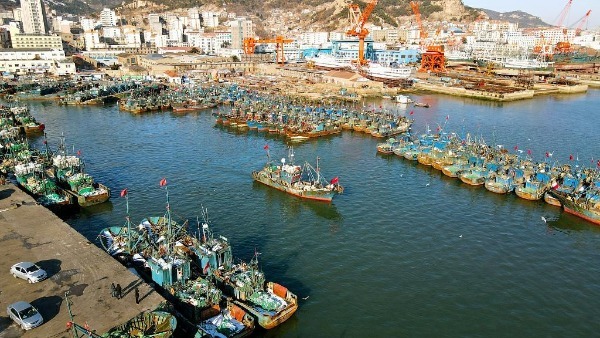 Fishing boats moored at Shidao fishing port in Rongcheng, Weihai, East China's Shandong province, pictured on Feb 18. [Photo/VCG]
