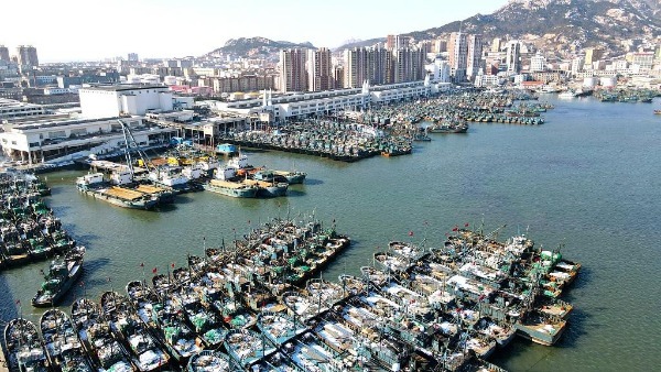 Fishing boats moored at Shidao fishing port in Rongcheng, Weihai, East China's Shandong province, pictured on Feb 18. [Photo/VCG]