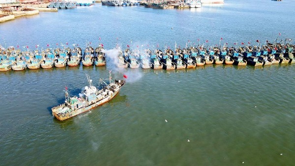 Fishing boats moored at Shidao fishing port in Rongcheng, Weihai, East China's Shandong province, pictured on Feb 18. [Photo/VCG]