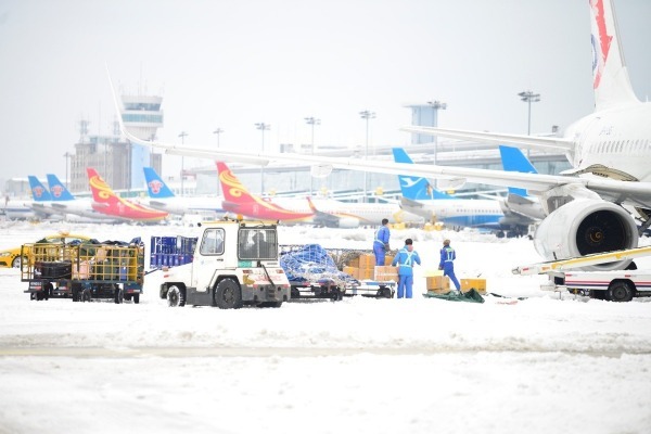 Because of the continuing snowfall, Dalian International Airport closed its runway until 11 am, leading to the cancellation of 18 flights and delays of 75 others.