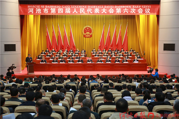The sixth session of the fourth Hechi Municipal People's Congress commenced on March 2 in Hechi's Jinchengjiang district, with 337 deputies attending the meeting.