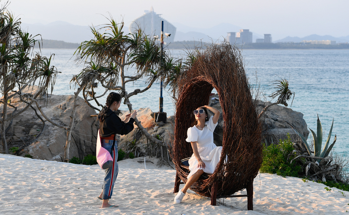 Tourists at Sanya, Hainan province, on Feb 15, 2021. [Photo/Xinhua]