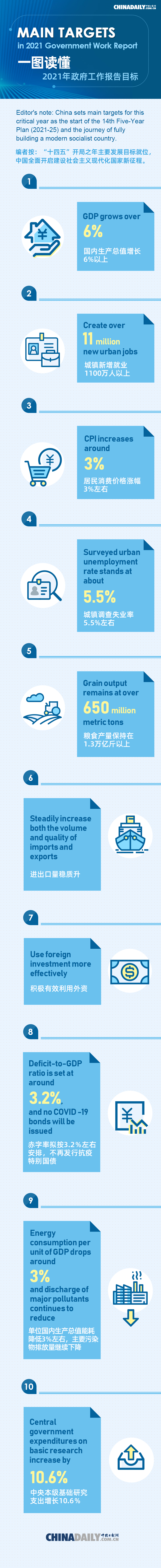 Main targets in 2021 Government Work Report