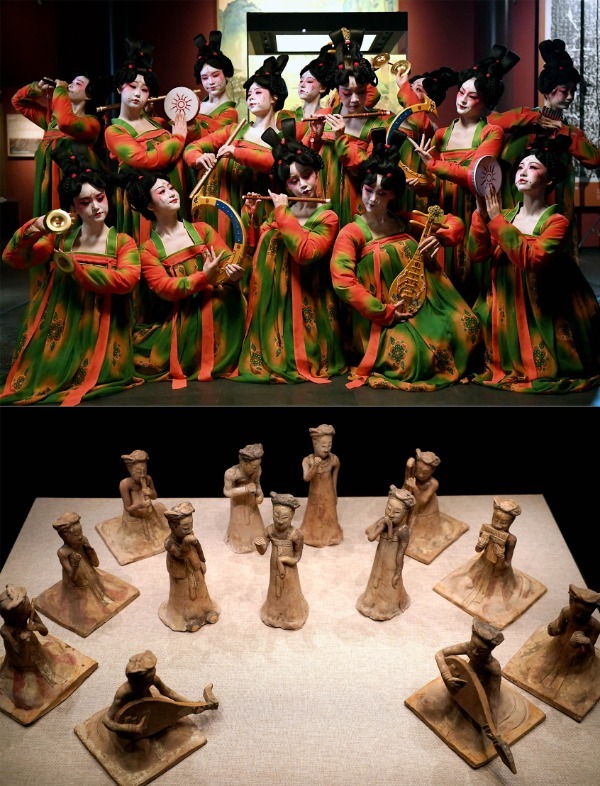 Zhang Deshui, vice director of the museum, said the figurines were unearthed from a Tang Dynasty tomb in Anyang, Henan province, in 1959. They have become important evidence of the evolution of traditional Chinese musical instruments and playing techniques.