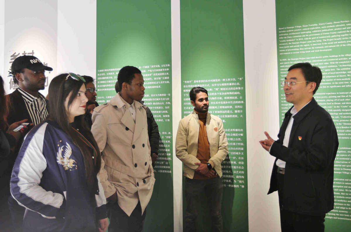 Guo Peng, Party chief of Xiuwu county, was visiting the art gallery in the village, and when he encountered the foreign students — a diverse group from six countries — Guo showed them around and provided information about the village and county.