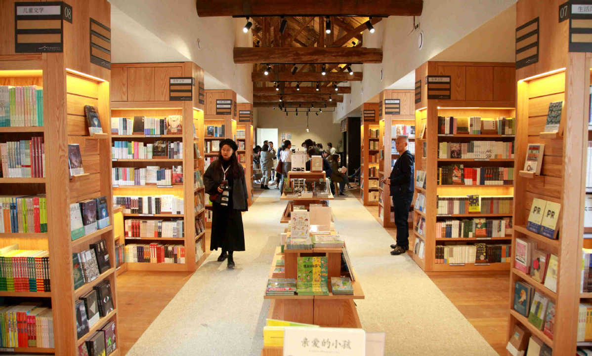 Overseas students from Henan Polytechnic University visit a bookstore in Dananpo village of Xiuwu county, Henan province, on March 4. [Photo provided to chinadaily.com.cn]