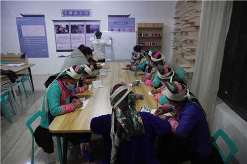 Since Jan 20, the Guizhou Women's Federation has been organizing training courses for women's improvement at the women's night school of Gaoya village. Eight college students returning to Gaoya were invited to be teachers. They were skilled in using the Miao language to communicate smoothly, and they also had certain teaching knowledge and enthusiasm for public welfare.