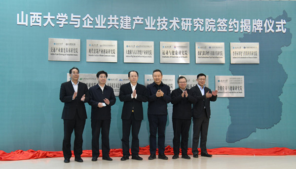 A signing ceremony for industrial technology research institutes jointly established by Shanxi University (SXU) and Shanxi enterprises was held at the university on March 5.