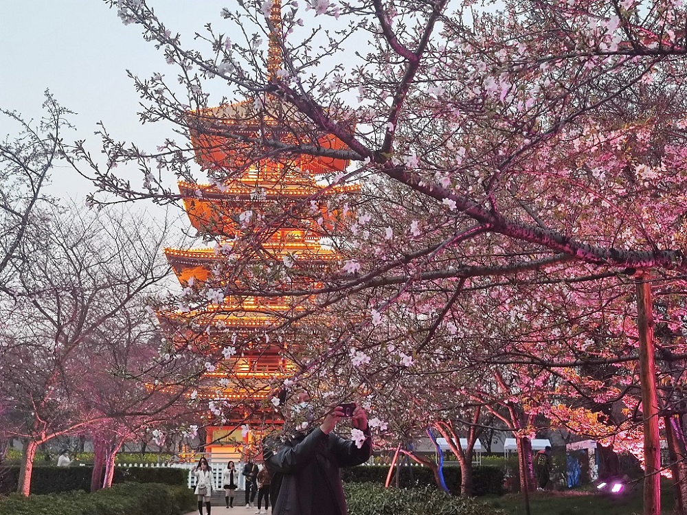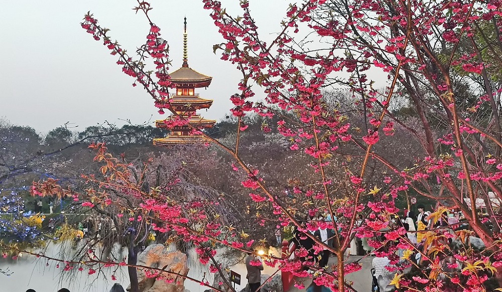 It is the ideal time to enjoy the cherry blossoms along East Lake in Wuhan, Hubei province! Drawing flocks of tourists, East Lake Cherry Blossom Garden has put on a pink veil and added glamour to the spring of this city. The blossoms can be appreciated by day and night!