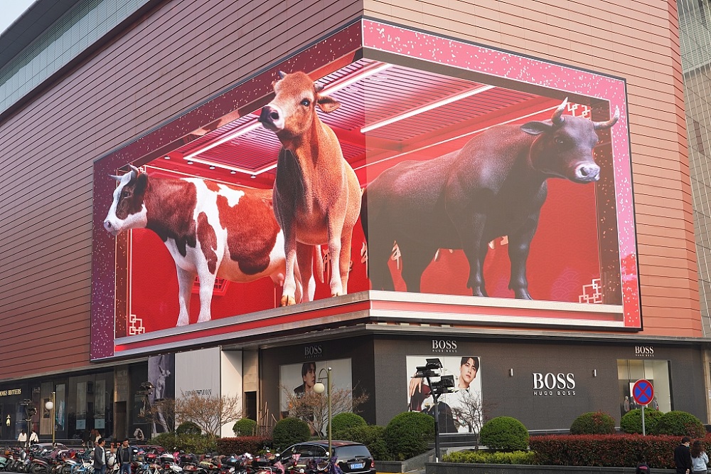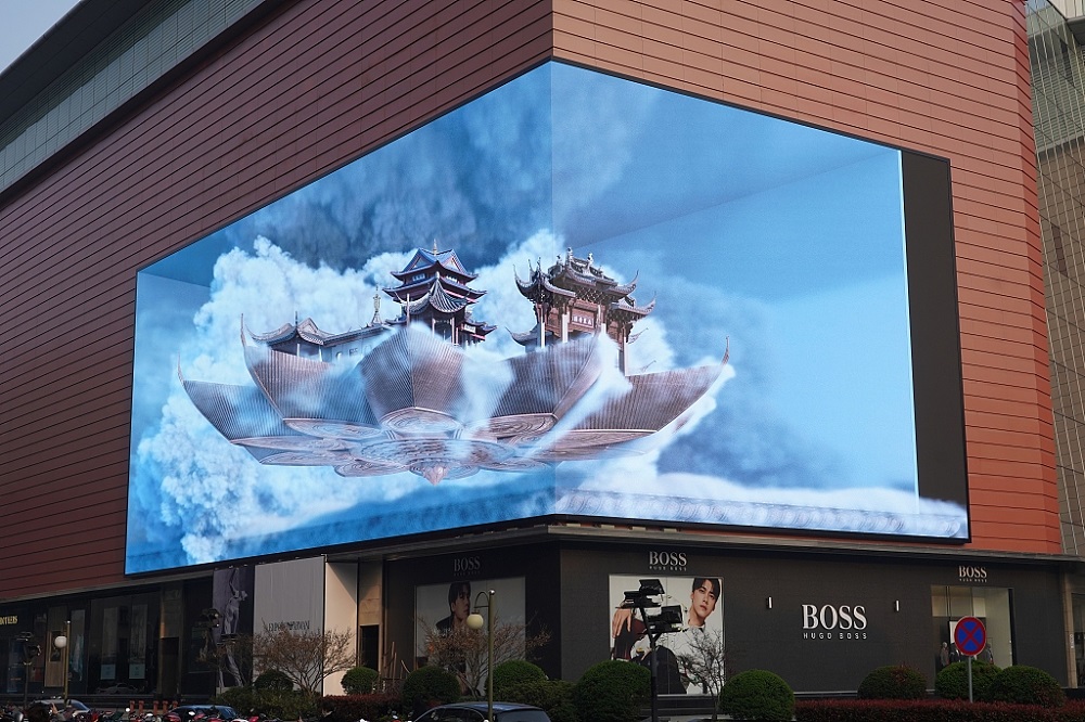 The glasses-free 3D screen at the Yaohan Mall is hugely popular in Wuxi, Jiangsu province. [Photos/cfp.cn]