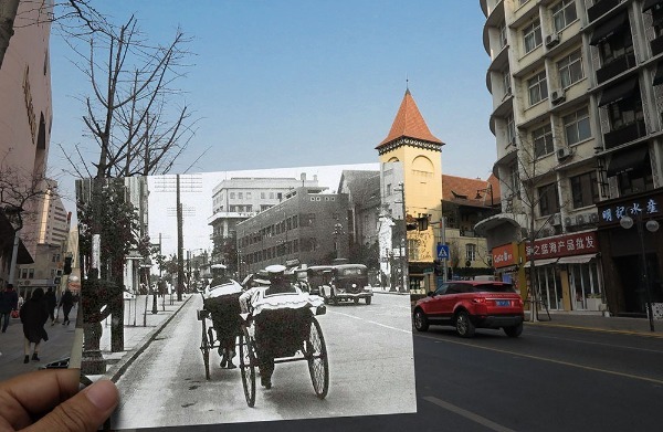 Foreign sailors ride rickshaws on Zhongshan Road, a major north-south road, 100 years ago. Today, one is more likely to see a burgundy SUV. [Photo by Zhao Jianpeng/for chinadaily.com.cn]