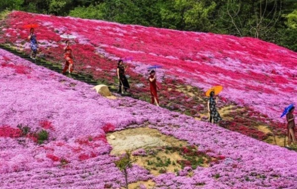 Visitors admire blooming flowers in spring in Yantai. [Photo by Yu Yamin/WeChat account: ytwlgw]