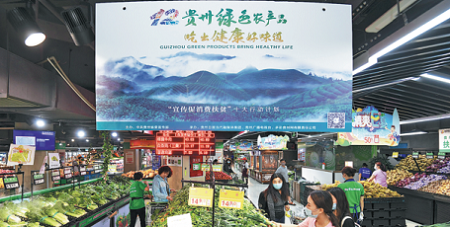 Consumers look to buy vegetables and agricultural products from poverty-stricken areas at a supermarket in Guiyang. CHINA DAILY