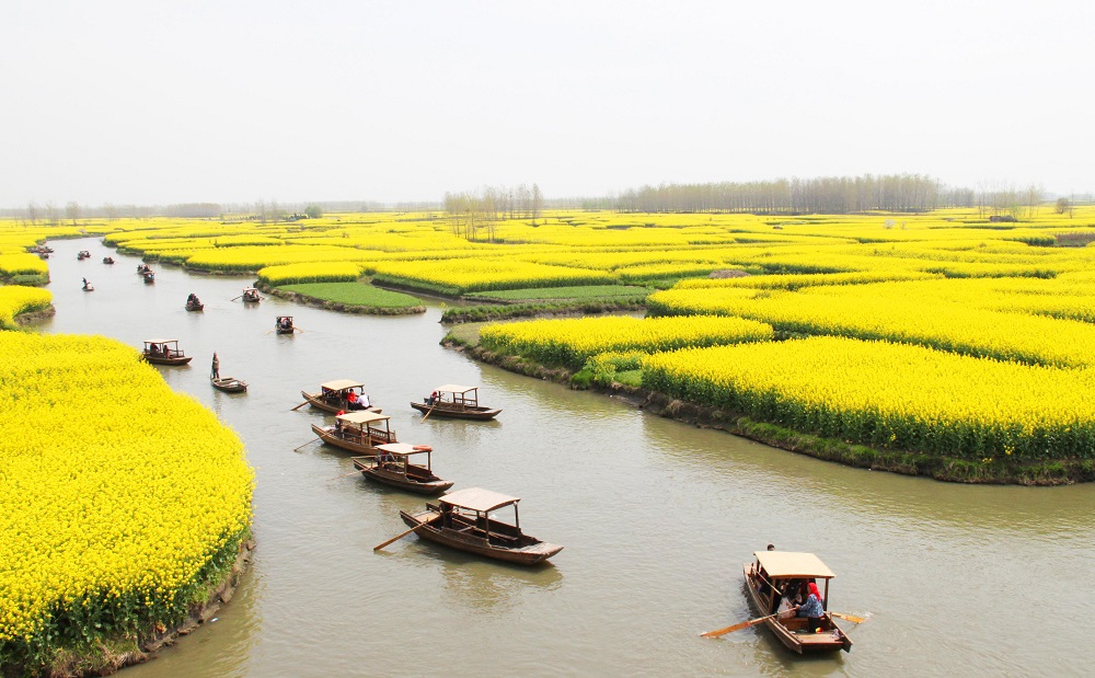 An important world agricultural heritage site, the Xinghua Qianduo Scenic Spot in Taizhou, Jiangsu province, recently launched its annual tourism festival. Take a boat and glide among these rapeseed flowers – we are sure you will be tickled pink when you immerse yourself in this golden landscape!