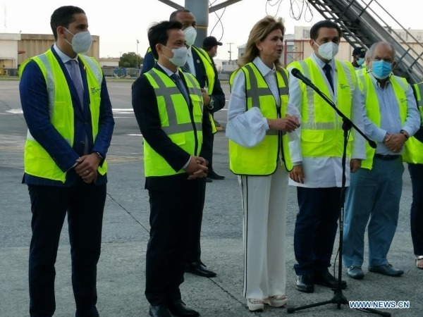 The cargo was received at the airport in the capital with the handover ceremony attended by the country's Vice President Raquel Pena, Minister of Public Health Daniel Rivera and Chinese Ambassador to the Dominican Republic Zhang Run.