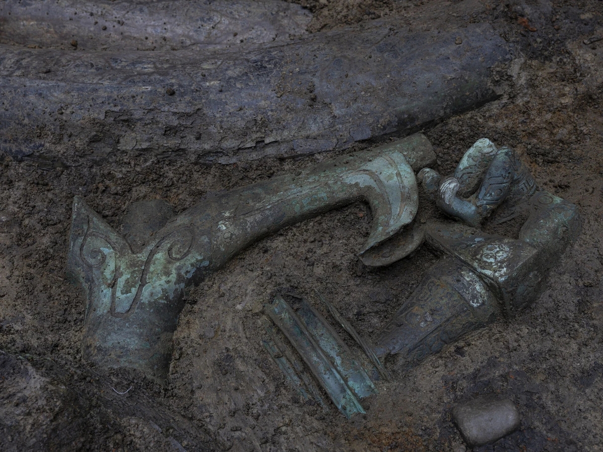 A bronze divine tree is a highlight among the newly found artifacts in Sanxingdui. [Photo provided to China Daily]