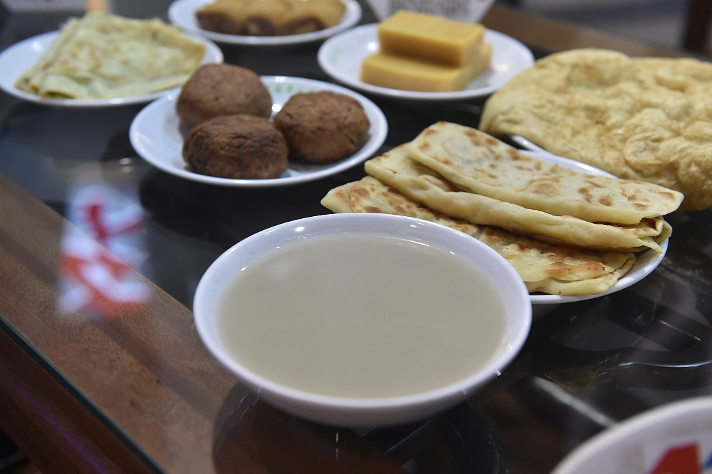 The fermented bean juice with other breakfast ingredients. [Photo/cfp.cn]