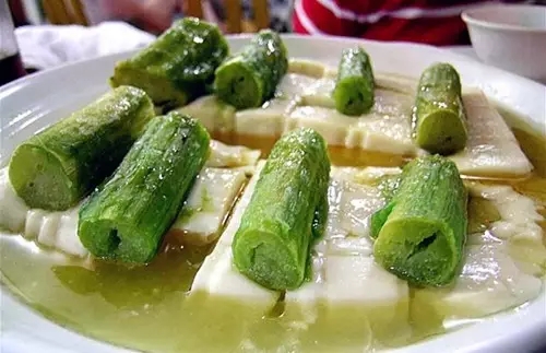 This enticing Shaoxing dish is relatively simple to make. Cut the thick amaranth stalks into pieces of between four and five centimeters, and soak them in clear water until you can see floating white foam. Then you should pickle them with salt in a sealed jar and ferment them for several days.