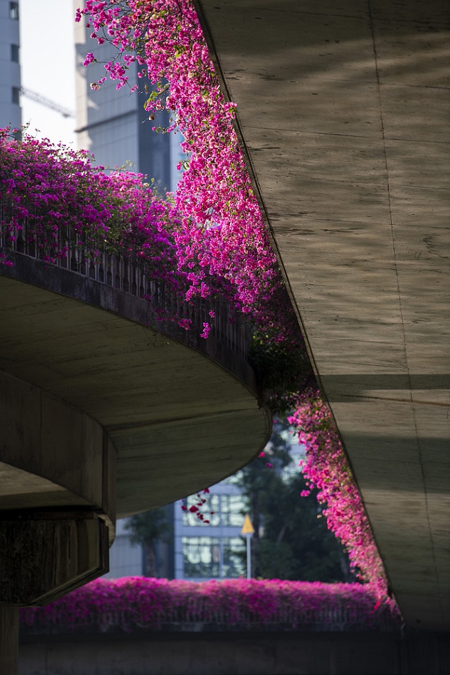 Now in full bloom, the bougainvilleas (Bougainvillea spetabilis) add a splash of bright pink to the city’s Sungangdong Interchange. We reckon this might be one of the most beautiful roadways in Shenzhen!
