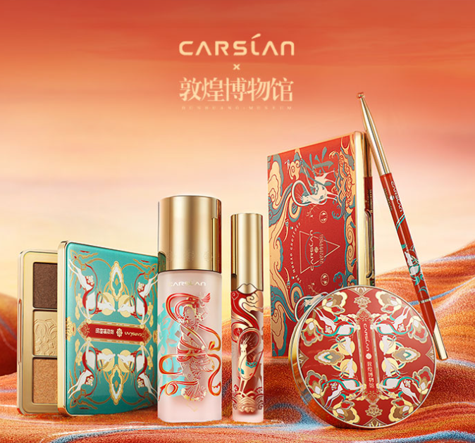 As the nine-color deer depicted in the Dunhuang grotto murals is an auspicious sign, the Dunhuang Museum adopts the image to promote its cosmetics products, including eyebrow pencils, lip gloss, eye shadow, and highlighting powders. Won't these products remind you of the "tale of the deer" while holding them in your hand in front of the mirror?