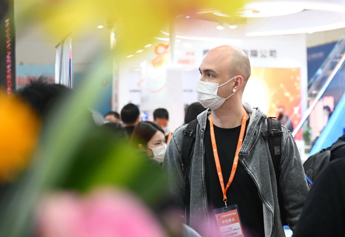 A foreigner visits the China Cross-border E-commerce Trade Fair in Fuzhou, East China's Fujian province, on March 18, 2021. [Photo/Xinhua]