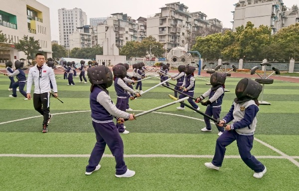 When a sports teacher asked children at a primary school in Chengdu if they wanted to demonstrate their swordplay skills, many of the more than 40 students sitting on the lawn raised their hands.