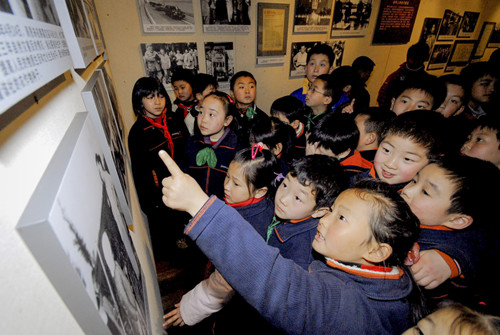 Local students take a close look at the exhibits at the Site of the First National Congress of the Communist Party of China in Shanghai. [Photo provided to China Daily/Xiao Yang]