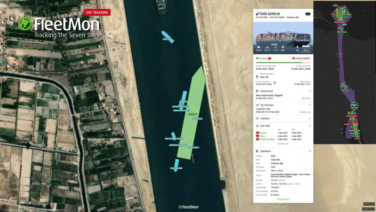 The 400-meter Panamanian-registered container ship, the Ever Given, ran aground last Tuesday, 115 kilometers north of the south entrance of the Suez Canal, and virtually blocked the vital crossroad for East-West cargo, which accounts for about 10 percent of the global seaborne trade.