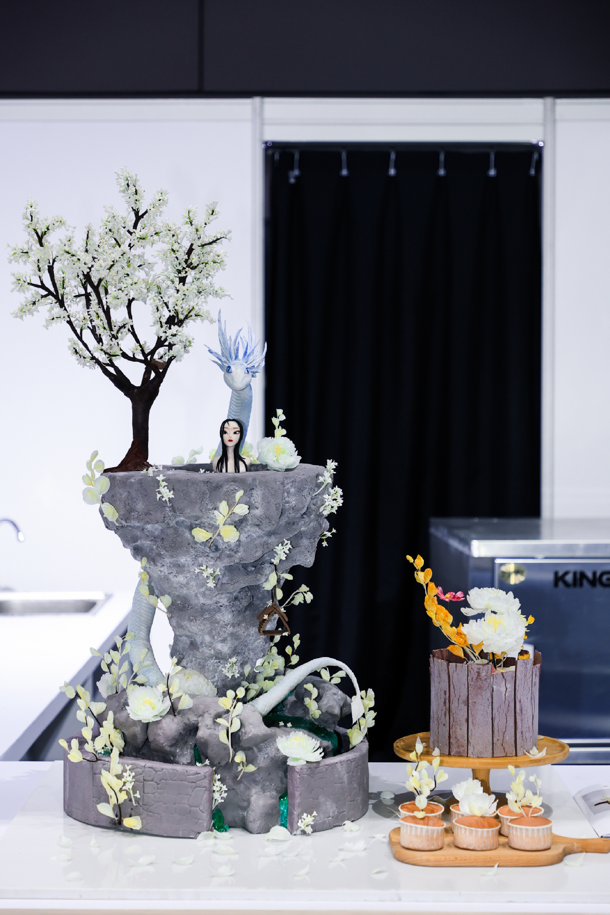 Fondant cakes and chocolate deserts are displayed during the 2021 "Hairoad" World Baking Dessert & Cake Contest China Region Selection Competition and 2021 "Kenwood" CLW Patisserie Elite Competition on Monday at the National Exhibition and Convention Center (Shanghai). [Photo provided to chinadaily.com.cn]