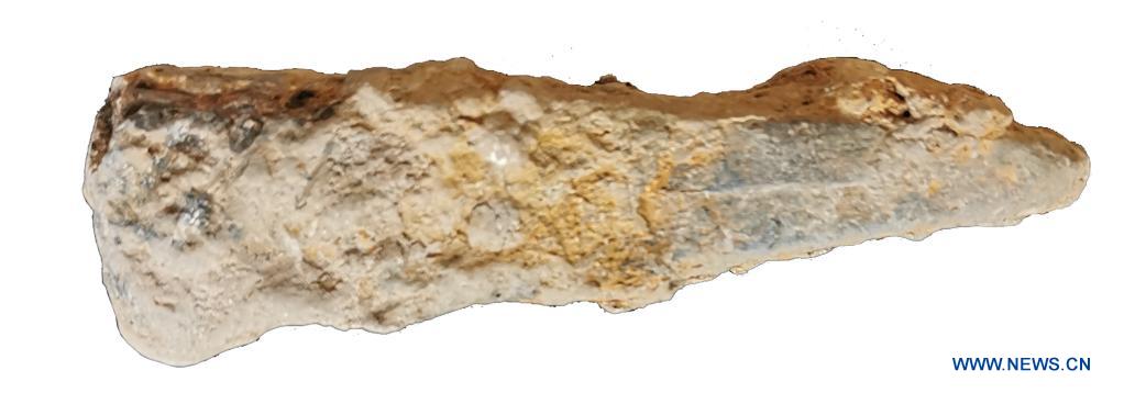 File photo provided by the heritage management center in Yangquan city of North China's Shanxi province shows a piece of iron axe unearthed from a 2,000-year-old well recently found in the province. An ancient nine-sided well, bearing a wooden structure, with a history of over 2,000 years was discovered in North China's Shanxi province, archaeologists announced Tuesday. (Heritage management center in Yangquan City/Handout via Xinhua)
