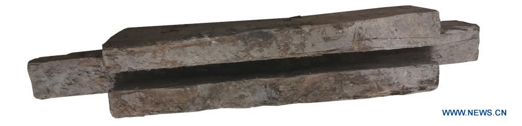 File photo provided by the heritage management center in Yangquan city of North China's Shanxi province shows a piece of wooden slab unearthed from a 2,000-year-old well recently found in the province. An ancient nine-sided well, bearing a wooden structure, with a history of over 2,000 years was discovered in North China's Shanxi province, archaeologists announced Tuesday. (Heritage management center in Yangquan City/Handout via Xinhua)