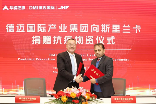 A ceremony marking DMI Industrial Group's donations of epidemic prevention supplies to Sri Lanka is held on March 22. [Photo/e23.com]