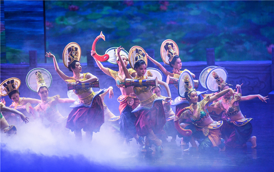 Flower Rains along the Silk Road is staged at Dunhuang Grand Theater on April 1. [Photo by Wang Binyin/provided to chinadaily.com.cn]