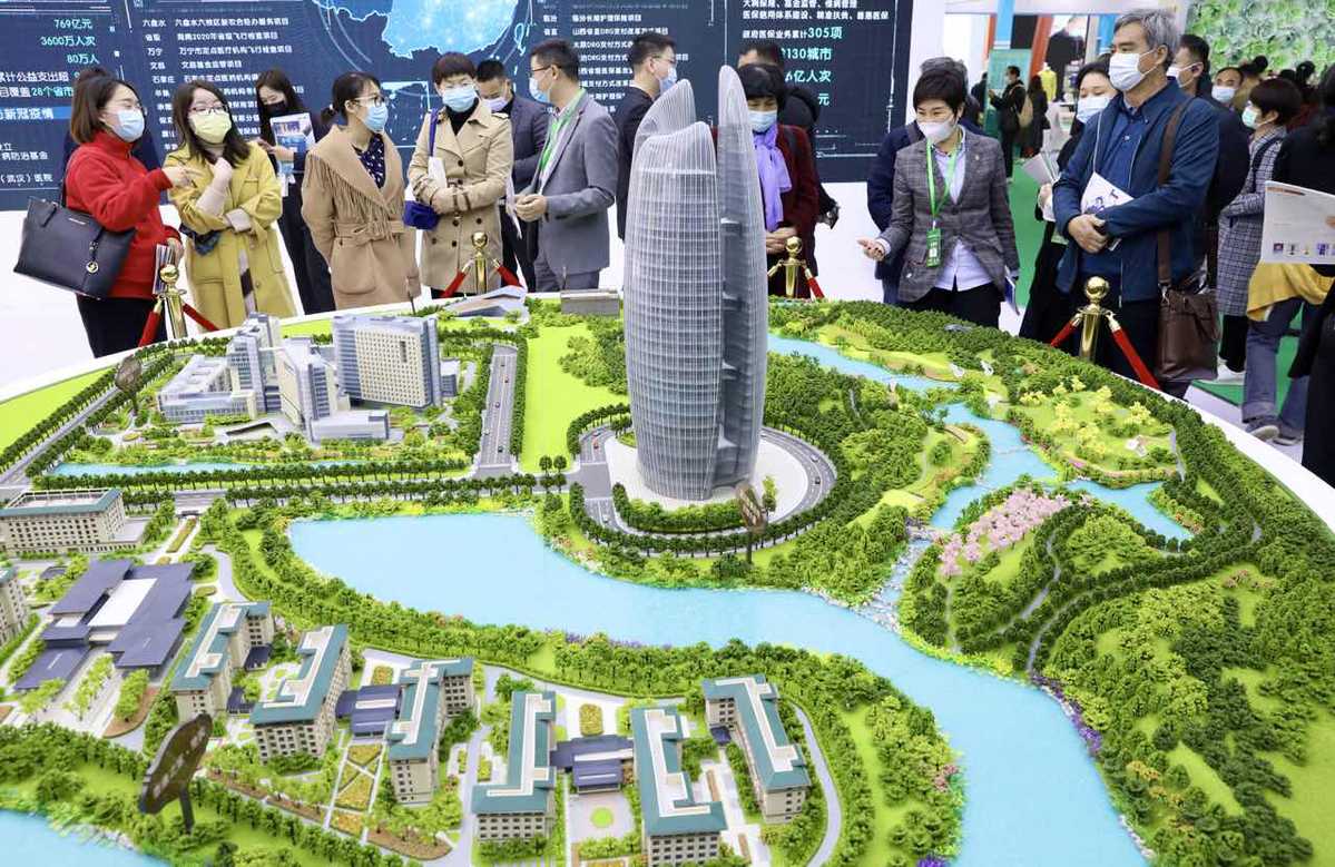 Visitors view models of a high-end nursing program at the World Health Expo in Wuhan, Central China's Hubei province on April 8, 2021. [Photo by Zhu Xingxin/chinadaily.com.cn]