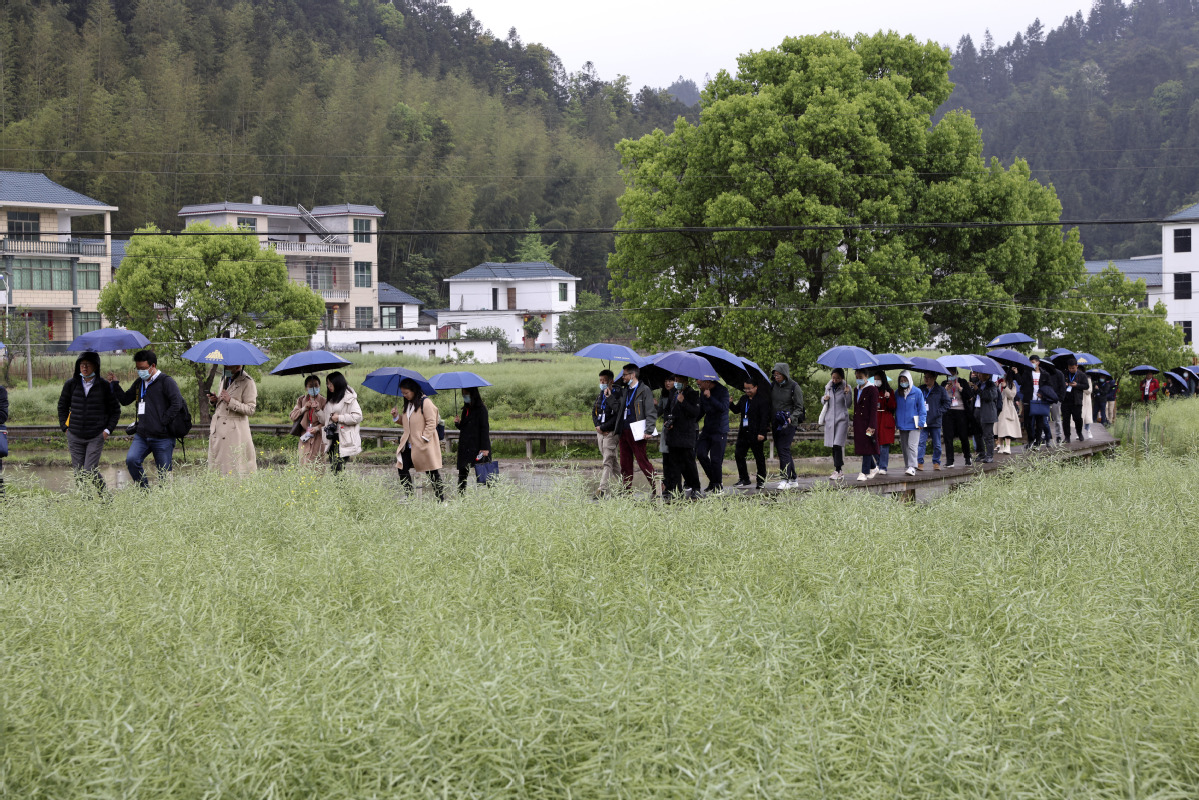 A group of overseas and domestic reporters visit the city to learn about the history of the CPC in Jinggang Mountains in Jiangxi province. [Photo by Feng Yongbin/China Daily]