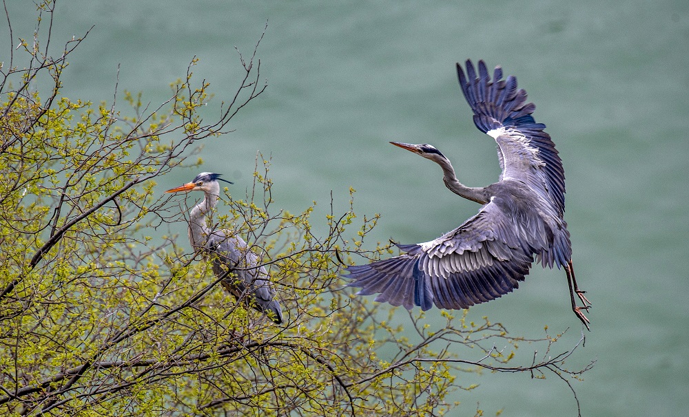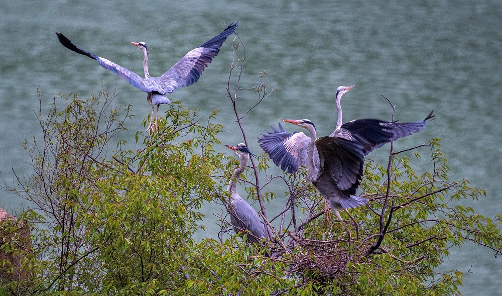 Look, our feathered friends are having a wonderful time! With the warming weather, hundreds of herons are flying back and settling down along the Yellow River bank in Yuncheng city, Shanxi province. Playing, foraging, and hatching … what a harmonious ecological painting they compose with the beautiful surroundings!