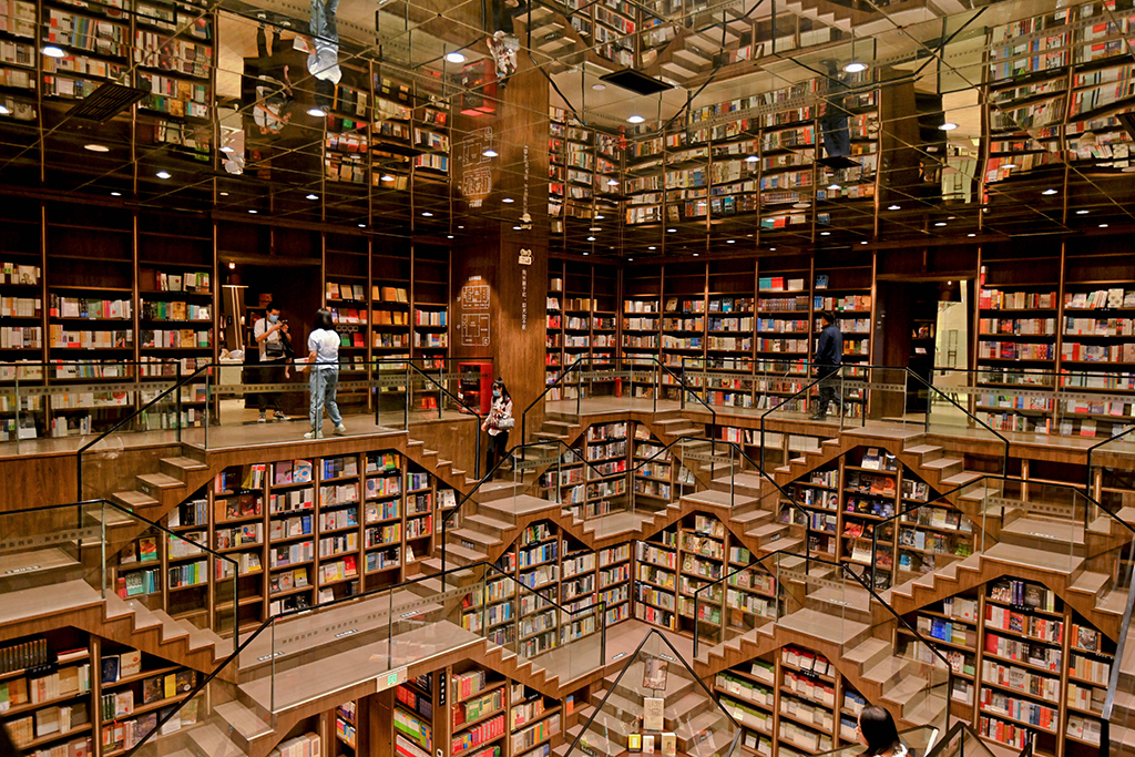 The mirrored ceilings and zigzag staircases of the Chongqing Zhongshuge Bookstore [Photo/IC]