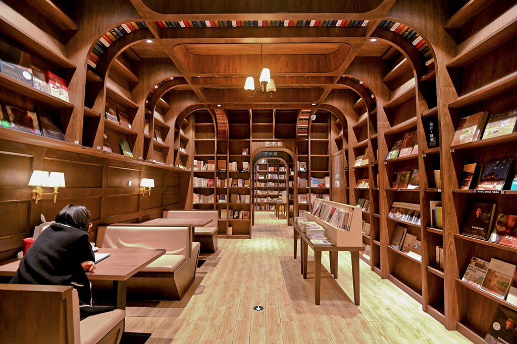Coupled with a retro European style, the reading area adopts an arch-shaped design, presenting the mountainous topography of Chongqing as well. Bookshelves fully loaded with books are even hung from the ceiling! The books are displayed according to author and publisher, so that the readers can find their preferred books easily and quickly.
