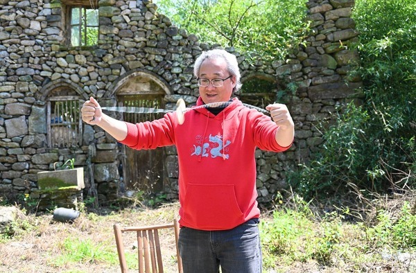 Wu Lixing plays with a bamboo toy. [Provided to chinadaily.com.cn]