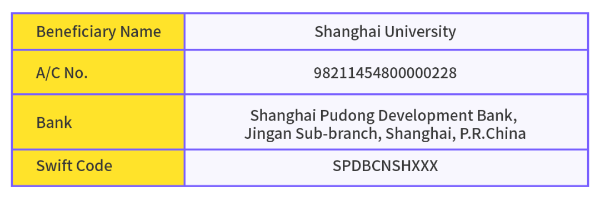 Pay your tuition fees, and send proof of payment (Remittance receipt or screenshot can be used as proof) by email to apply6@oa.shu.edu.cn before August 31, 2021.
