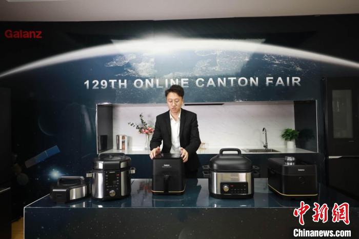 A staff member of Chinese home appliance maker Galanz introduces exhibits via livestreaming during the 129th session of the China Import and Export Fair. [Photo/Chinanews.com]