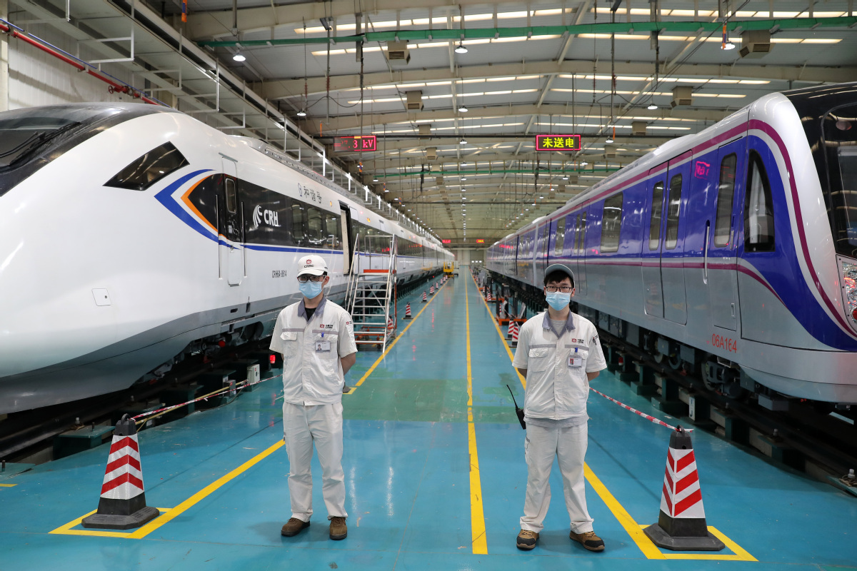 The railway trains looks sleek and shiny at the workshop of CRRC Guangdong Co Ltd in Jiangmen, South China's Guangdong province, on April 18, 2021. [Photo by Wang Zhuangfei for chinadaily.com.cn]