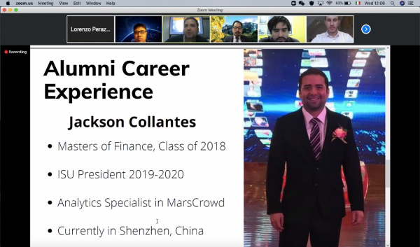 Next, Jackson Collantes, president of the ISU from 2019-2020 and now an Analytics Specialist in MarsCrowd, a quality multilingual data provider for machine learning projects, answered questions about working in a Chinese company.