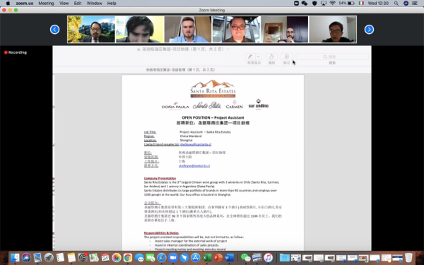 Next, students learned about Chile-based Santa Rita Estates, from the company’s employee Shelley Xu. Santa Rita Estates is the best-selling wine brand in Chile. Xu talked about open positions for project assistants in Chinese commercial teams as well as potential European positions.