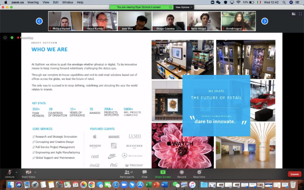 Outform is an international retail sales company that gives end-to-end retail solutions for famous brands. Project Operations Manager Ryan Schock helped students understand where they might fit in at the company. The Shenzhen office mainly focuses on designing, manufacturing and displaying retail stores for electronic goods. Currently, the Chinese offices have positions for project manager, operation specialist, hardware engineer, QA manager and Engineering Director.